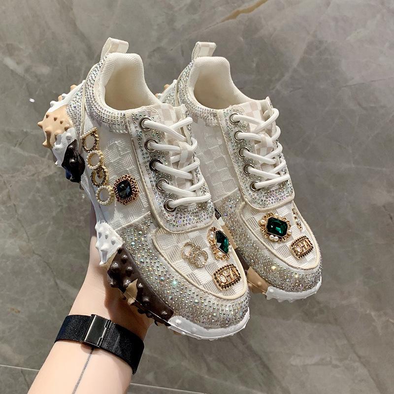 Модные женские кроссовки весна осень мода роскошные женские туфли со стразами 2024 новые уличные женские спортивные туфли на платформе вулканизированные — купить товар онлайн с бесплатной доставкой по всему миру!