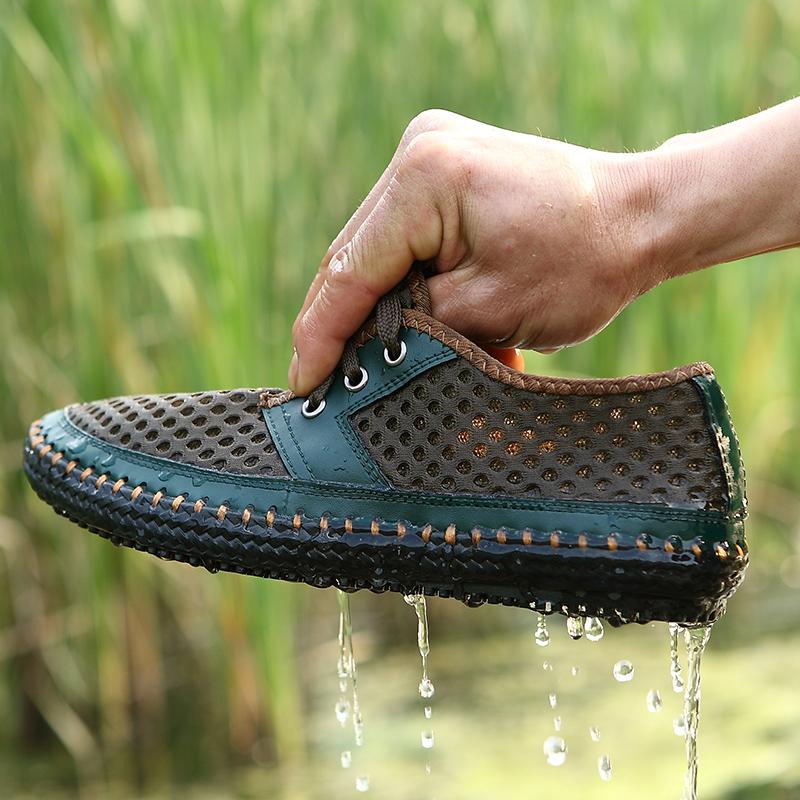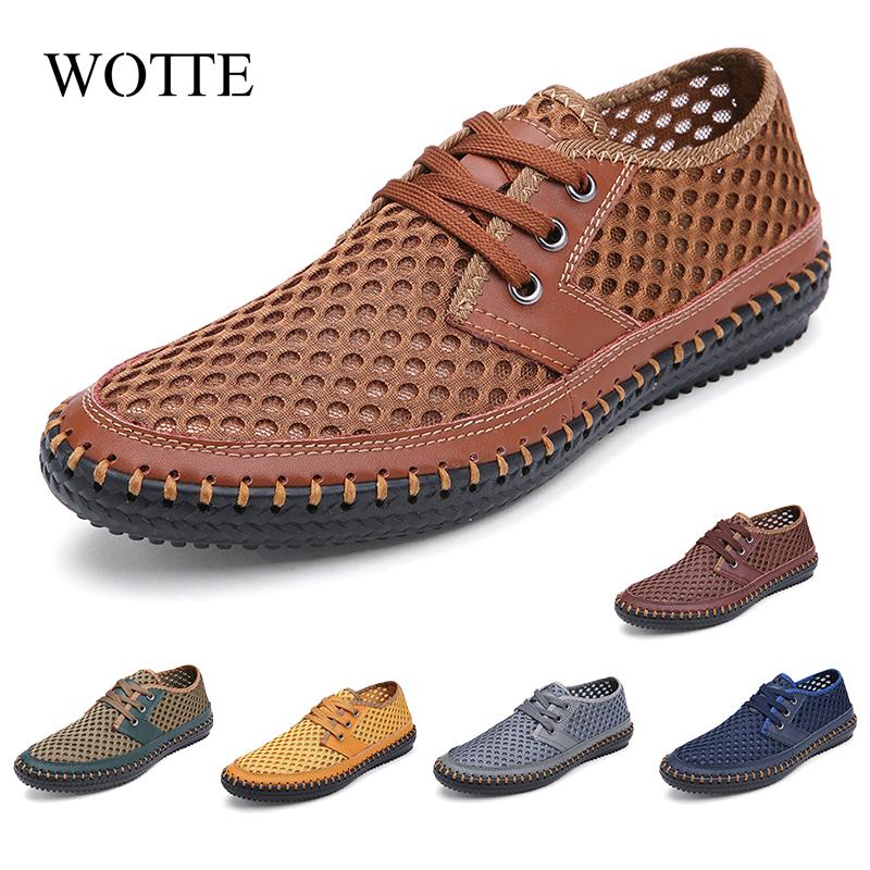 Модные новые летние дышащие сетчатые мужские повседневные туфли для комфорта, мужские мокасины ручной работы, мокасины на шнуровке, мужские туфли большого размера 46, 47, 48