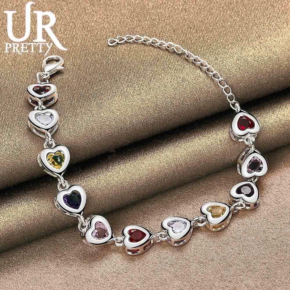 Браслет в форме сердца из стерлингового серебра 925 пробы с разноцветным цирконием класса ААА, модные свадебные украшения