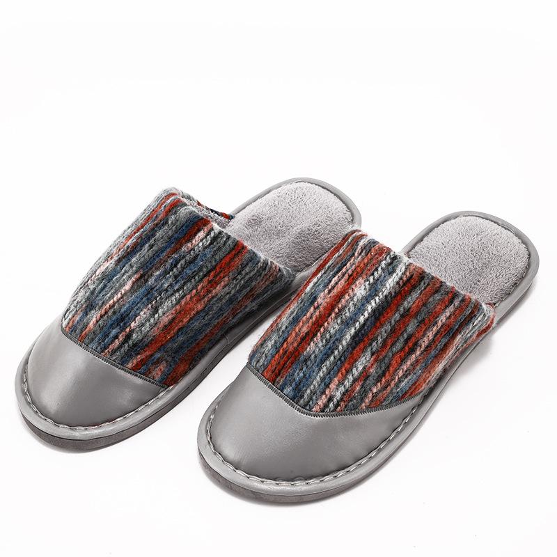 Модные зимние мужские тапочки, новые мужские кожаные туфли, домашние тапочки унисекс с плоским круглым носком, износостойкие модные туфли, мужские тапочки для дома