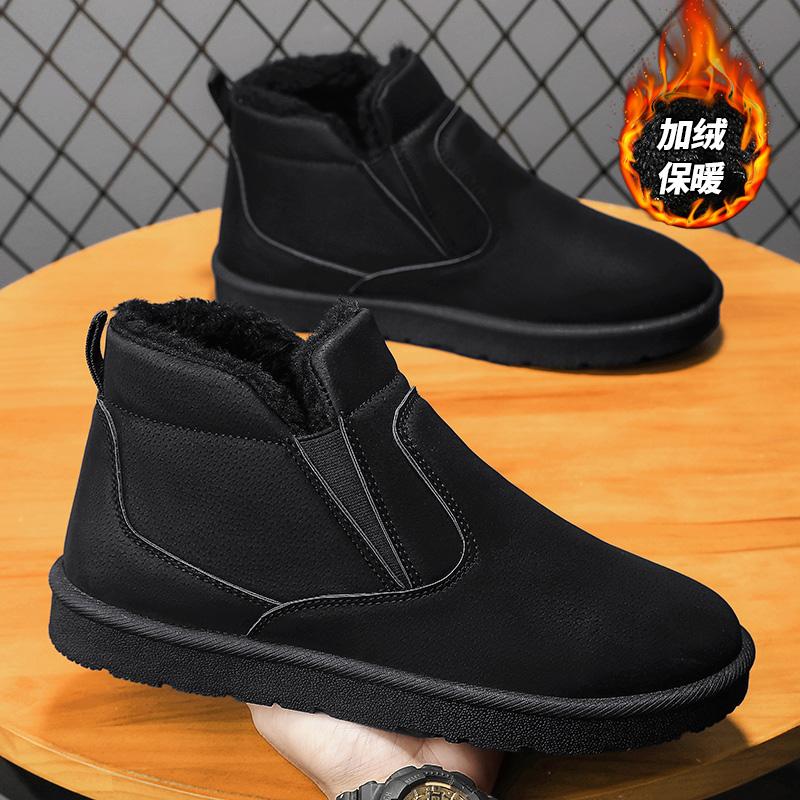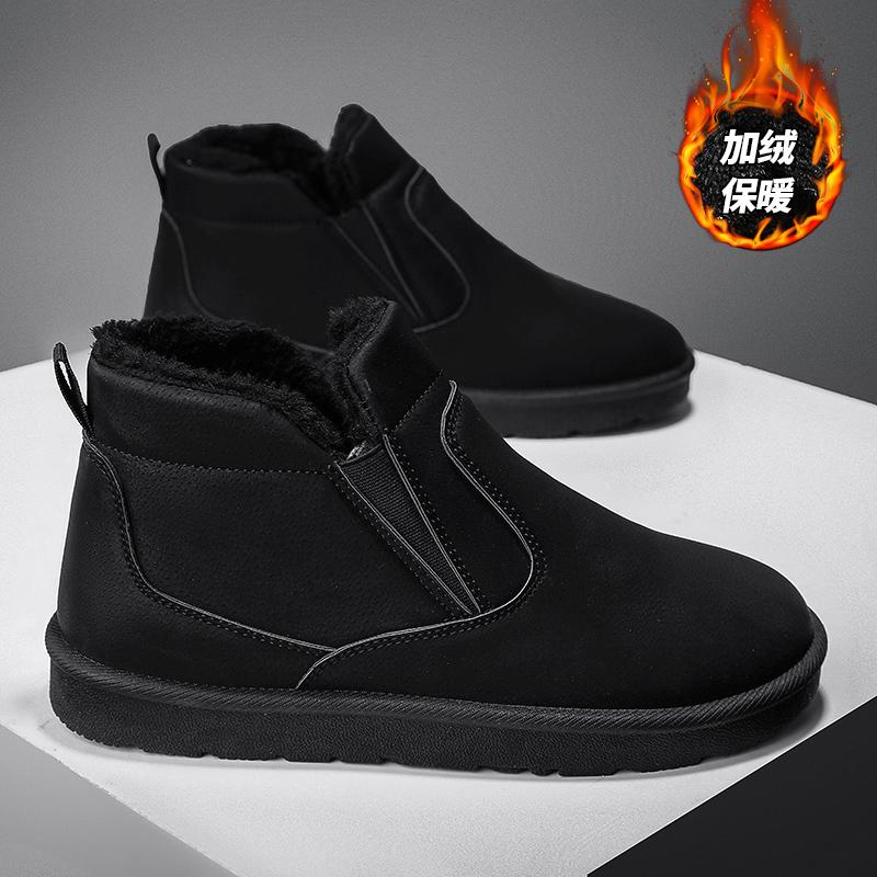 Модные мужские ботинки Теплые меховые зимние ботинки Замшевые кожаные меховые ботильоны Мужская плюшевая обувь Уличная обувь Мужские зимние плюшевые зимние ботинки Главная