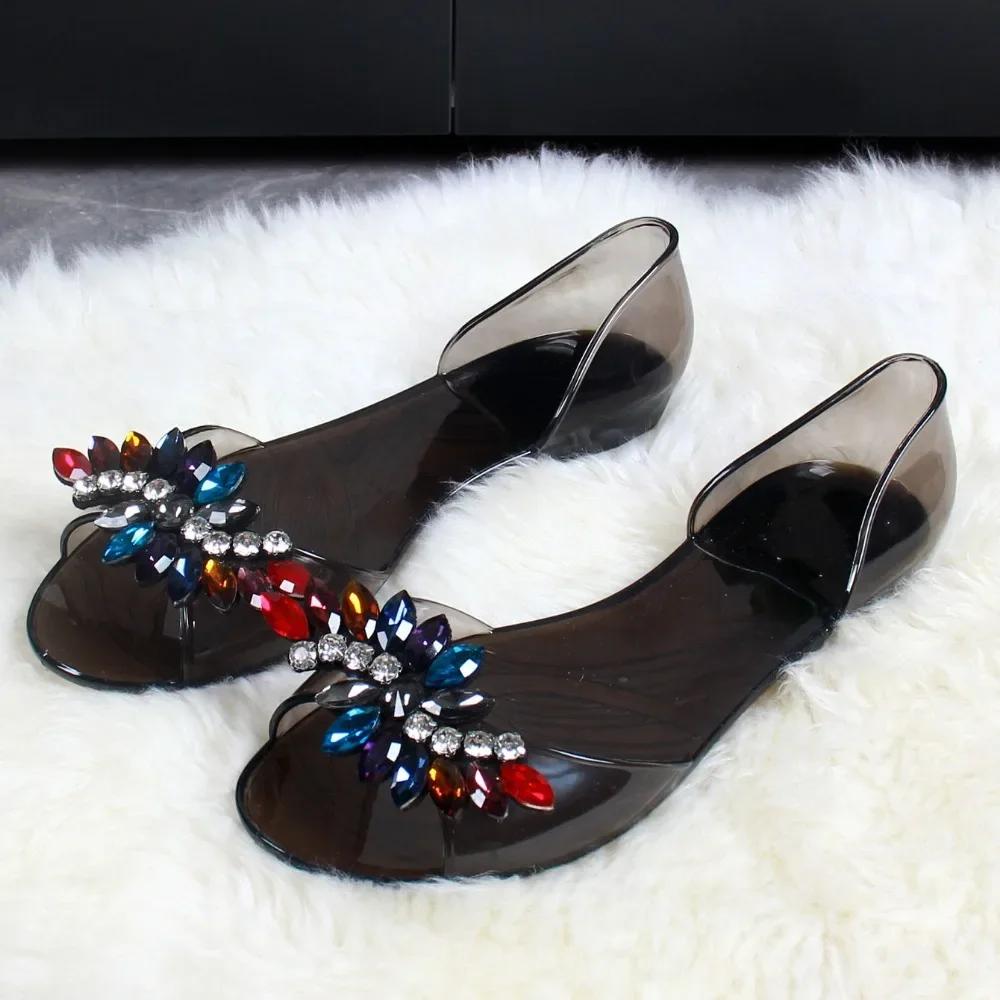 Новые модные прозрачные сандалии женские желеобразные сандалии летние туфли на плоской подошве сверкающие бриллиантовые сандалии в форме рыбьего рта для женщин Sandalias De Mujer