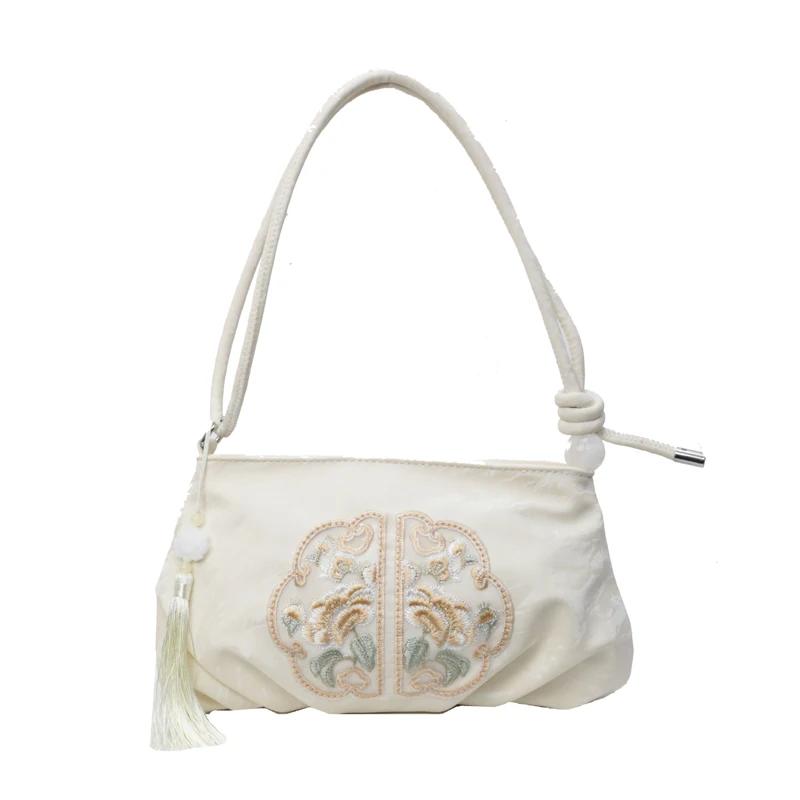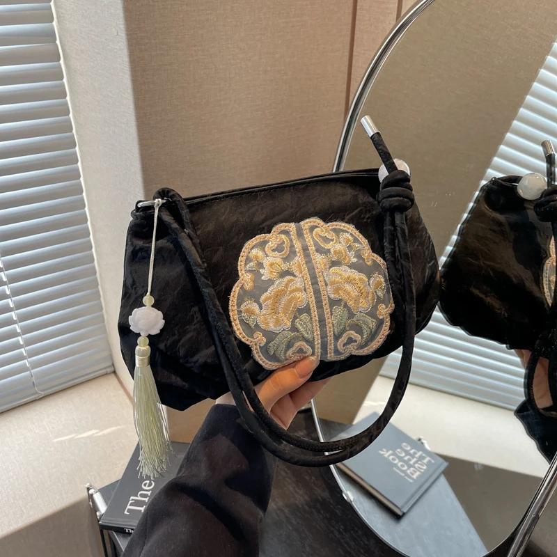 Модная китайская ретро-сумка с вышивкой через плечо из искусственной кожи с кисточками и украшением в виде облака, новая роскошная дизайнерская женская сумка
