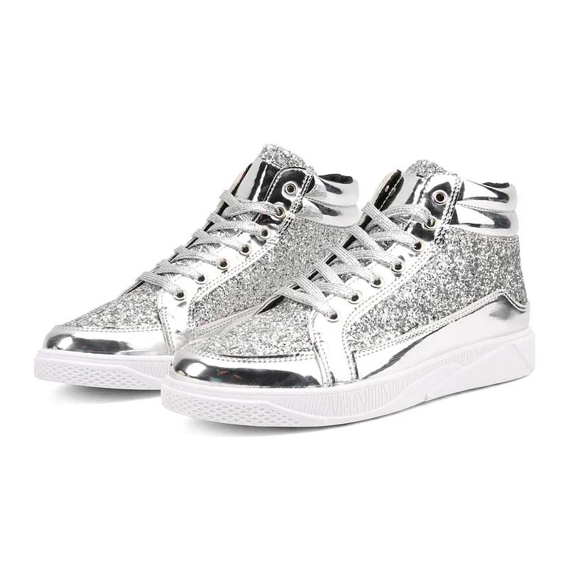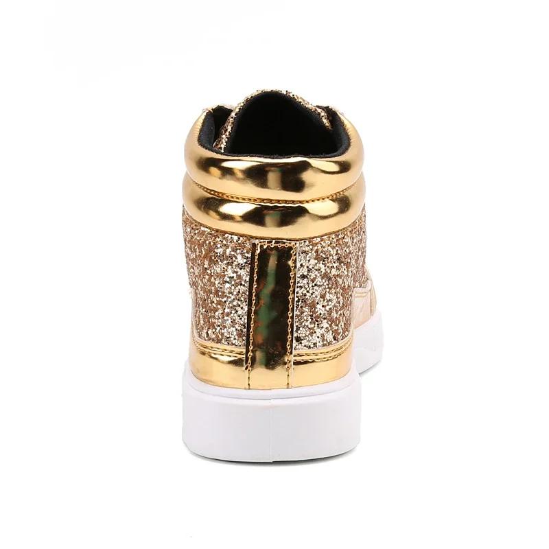 Мода Горячая Мода Золотые Блестящие Зеркала Мужская Обувь Повседневная Клуб Бар Блестки Уличная Одежда Хип-хоп Высокие Мужские Кроссовки zapatos de hombre
