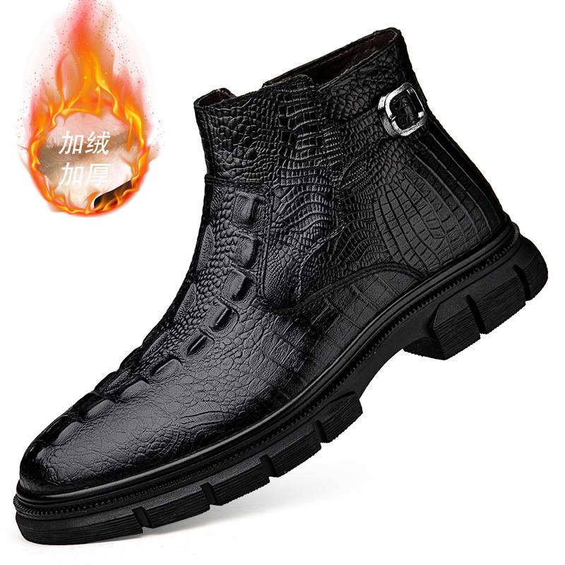 Модные черные ботинки для мужчин, модные ботинки из крокодиловой кожи с боковой молнией, ботильоны на платформе, удобные мягкие мужские мотоциклетные ботинки