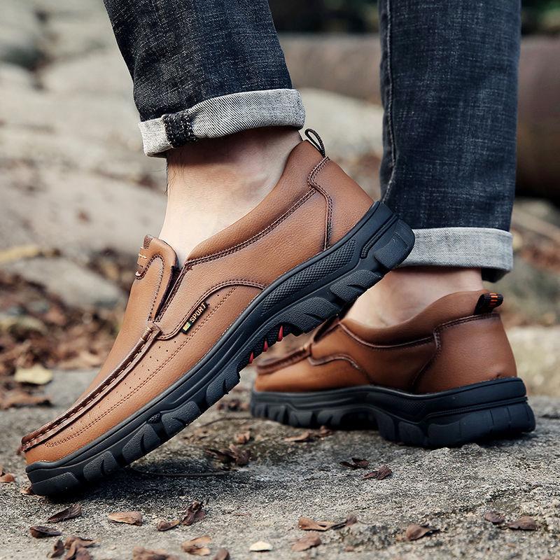Модные мужские туфли из натуральной кожи 38-47, мягкие нескользящие резиновые мокасины, мужские повседневные туфли из натуральной кожи