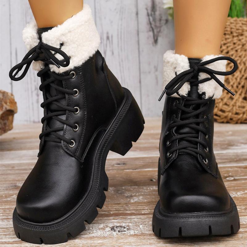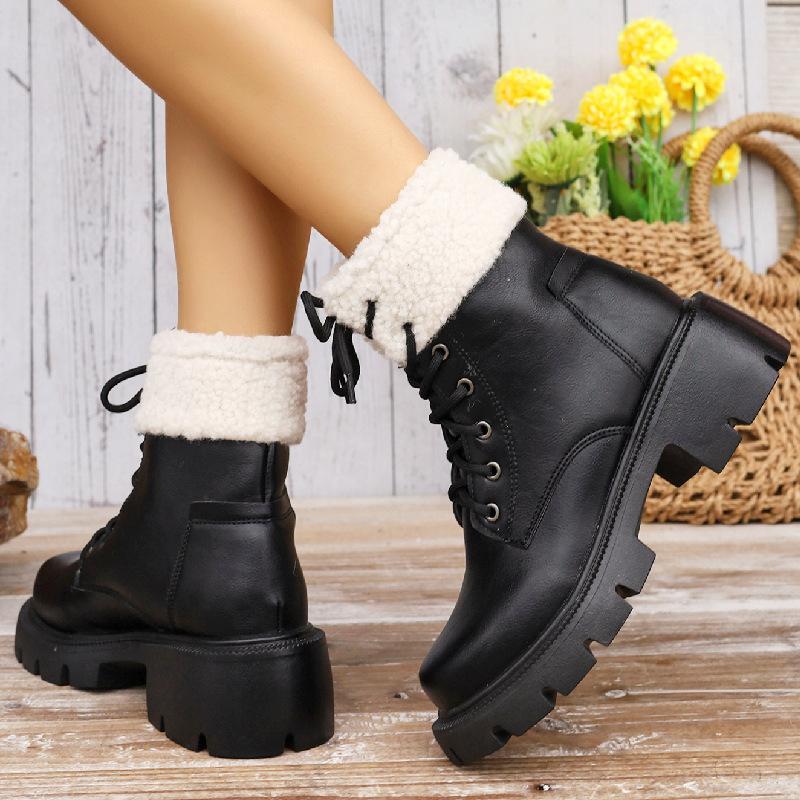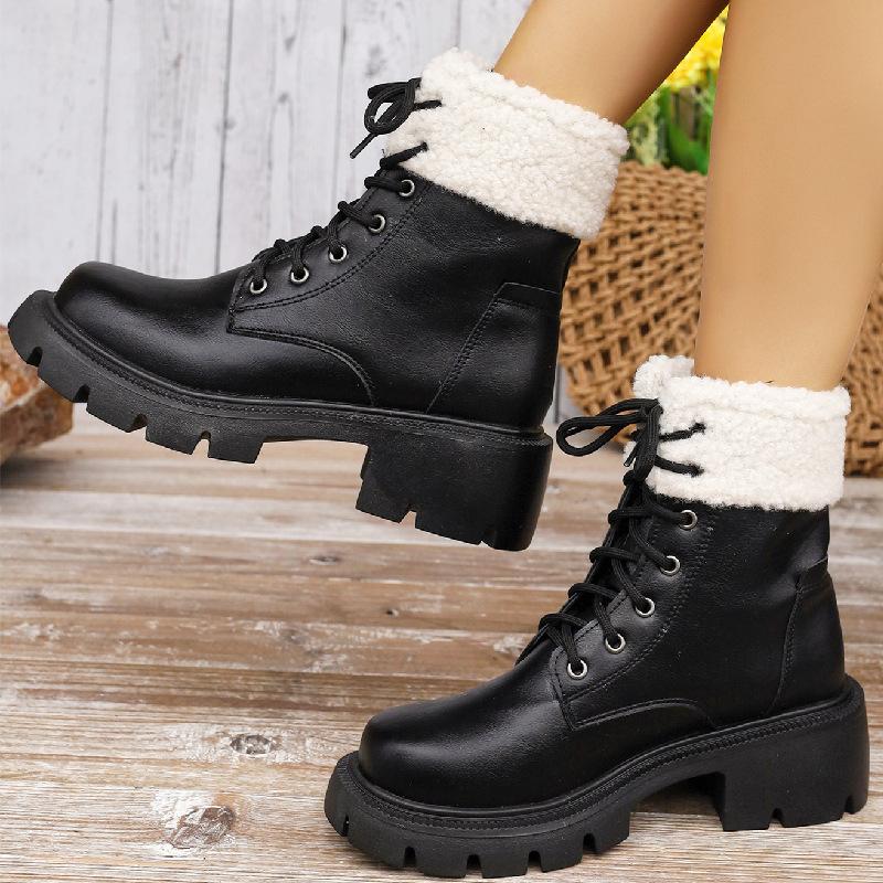 Модные зимние ботинки больших размеров для женщин на зиму 2024 года, новые теплые женские ботинки с толстой подошвой из плюша и нескользящие ботинки