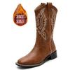 Модные светло-коричневые темно-коричневые роскошные брендовые зимние женские сапоги 2024 года, вышитые кожаные сапоги до середины голени, мягкие ковбойские сапоги — купить товар онлайн с бесплатной доставкой по всему миру!
