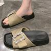Модные женские тапочки с кристаллами и пряжкой, черные, хаки, бежевые, без застежек, модные шлепанцы, повседневные сандалии, удобные туфли со стразами