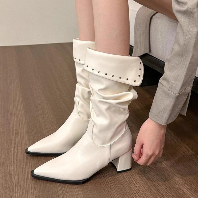 Мода 2024 Зима Новые женские сапоги до середины икры Массивные остроносые кожаные туфли Трендовые модные туфли-лодочки Женские туфли на высоком каблуке Snow Long — купить товар онлайн с бесплатной доставкой по всему миру!