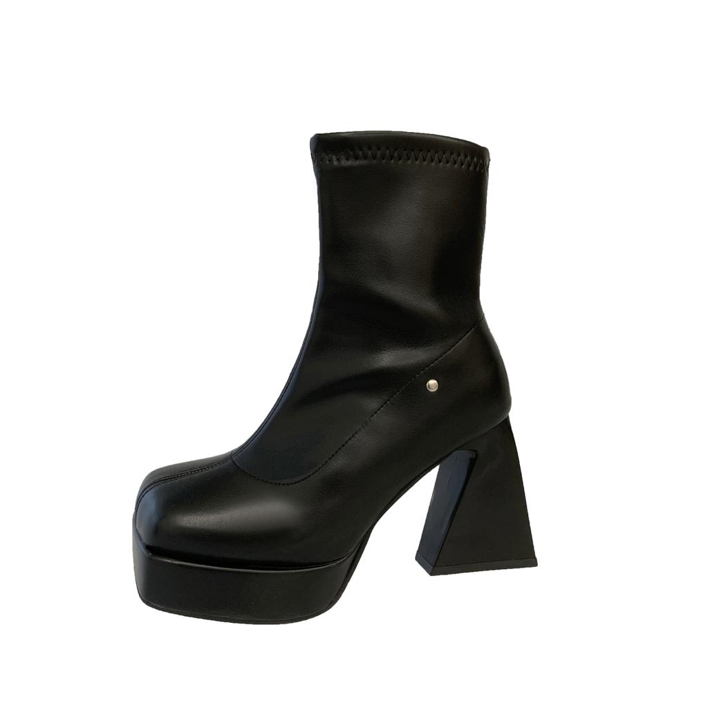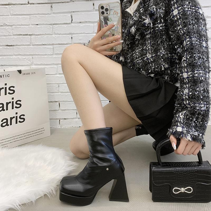 Мода 2024 года. Квадратные высокие каблуки для женщин в ковбойском стиле. Модные туфли с боковыми молниями. Осень-зима. Элегантные короткие ботильоны на платформе для женщин.