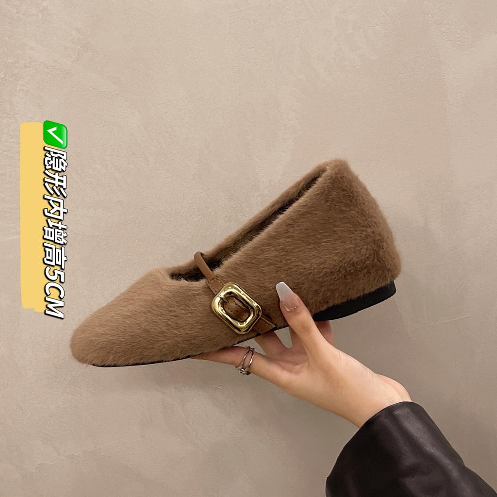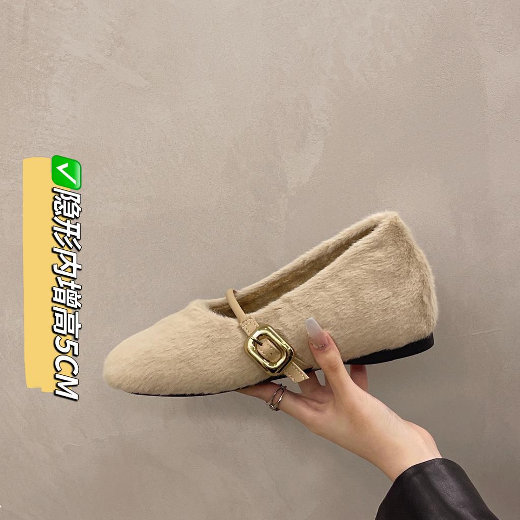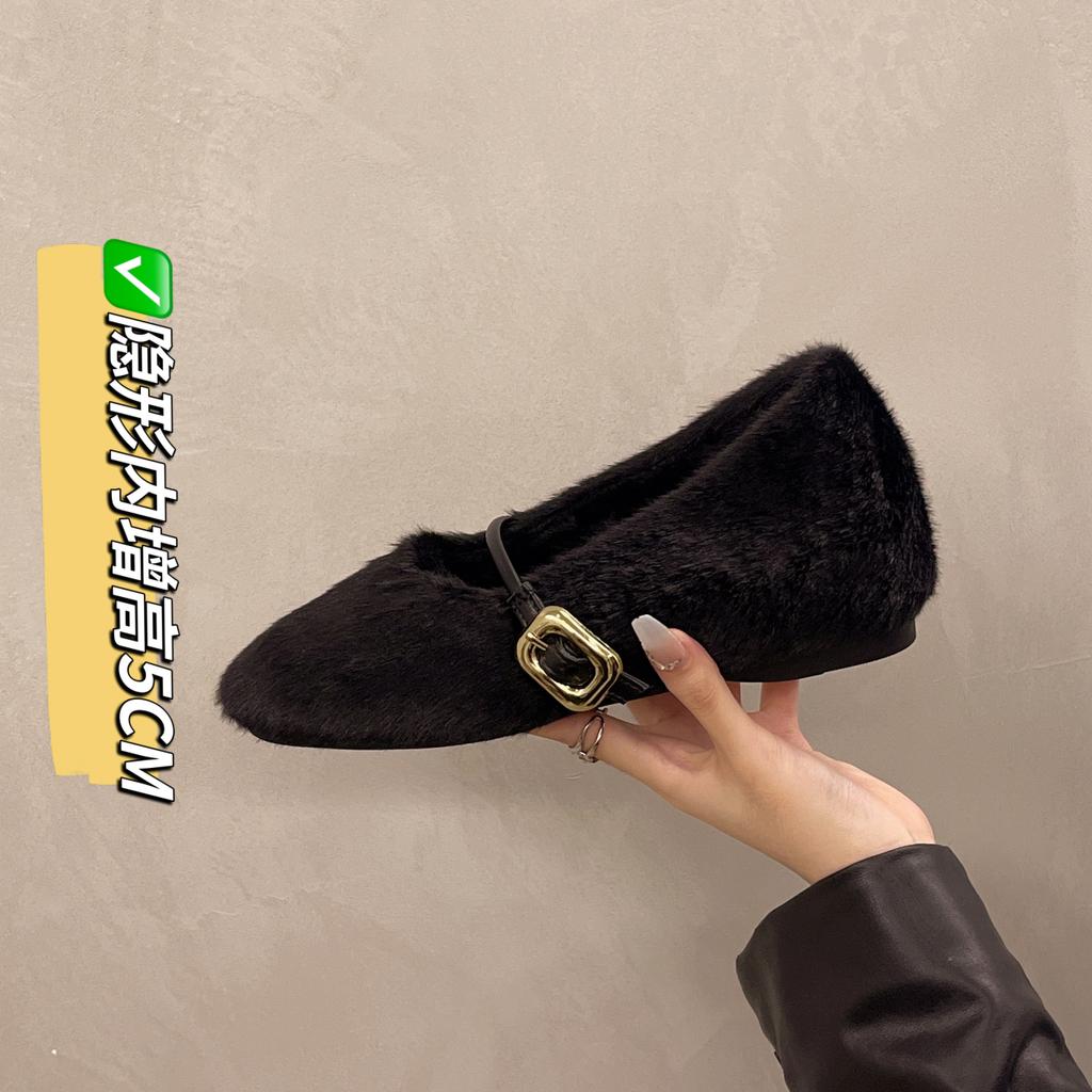 Модные туфли AJGS, новые элегантные туфли Мэри Джейн с пряжкой на ремне из меха, женские удобные мягкие пушистые балетки на плоской подошве, женские плюшевые неглубокие мокасины, лаконичное платье