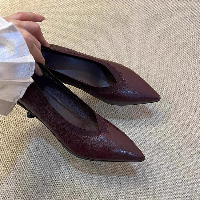 Модные новые женские туфли-лодочки 2024 года, туфли-лодочки с острым носком, туфли на каблуке-рюмочке, офисная рабочая обувь для женщин, черная, весна-осень
