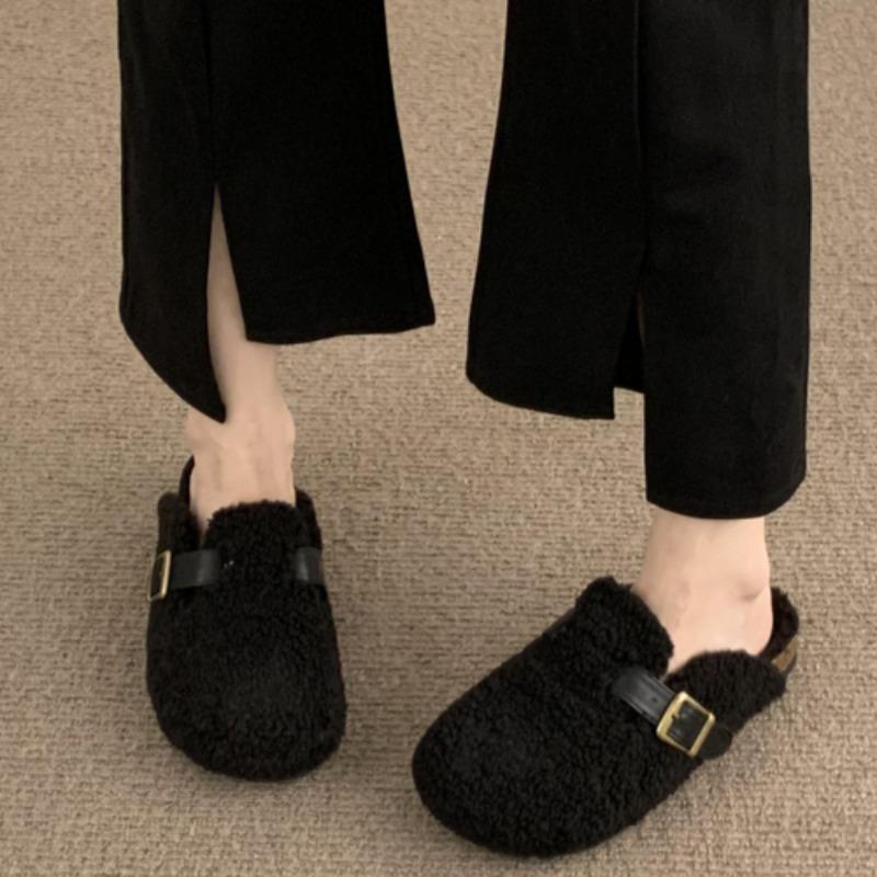 Мода 2024 года, модные новые плюшевые женские туфли Baotou, низкие теплые тапочки, простые римские тапочки с плоской подошвой, однотонные хлопковые тапочки