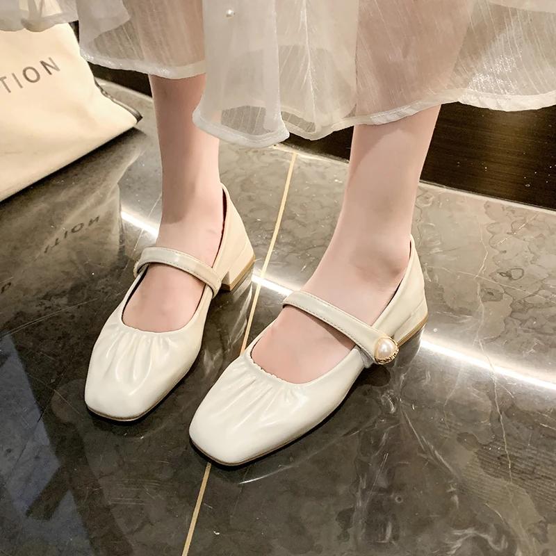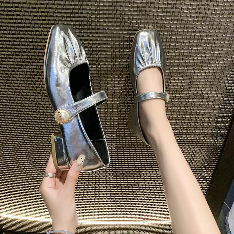 Модные туфли на плоской подошве для женщин 2024 года, туфли с квадратным носком, низкие, с покрытием из ткани PU, туфли Мэри Джейн в римском стиле с резиновыми копытами, плиссированные туфли с покрытием из носка