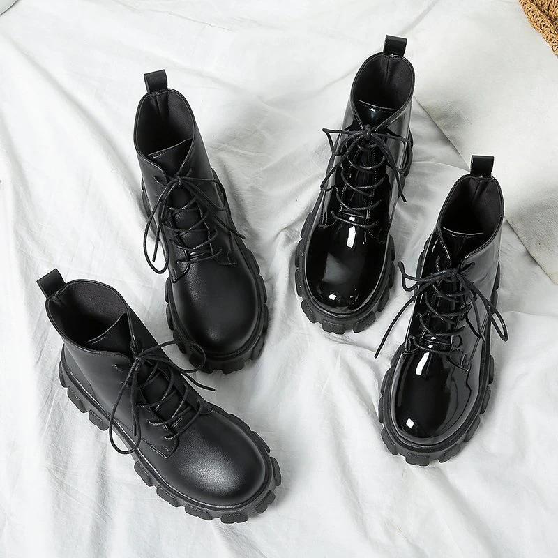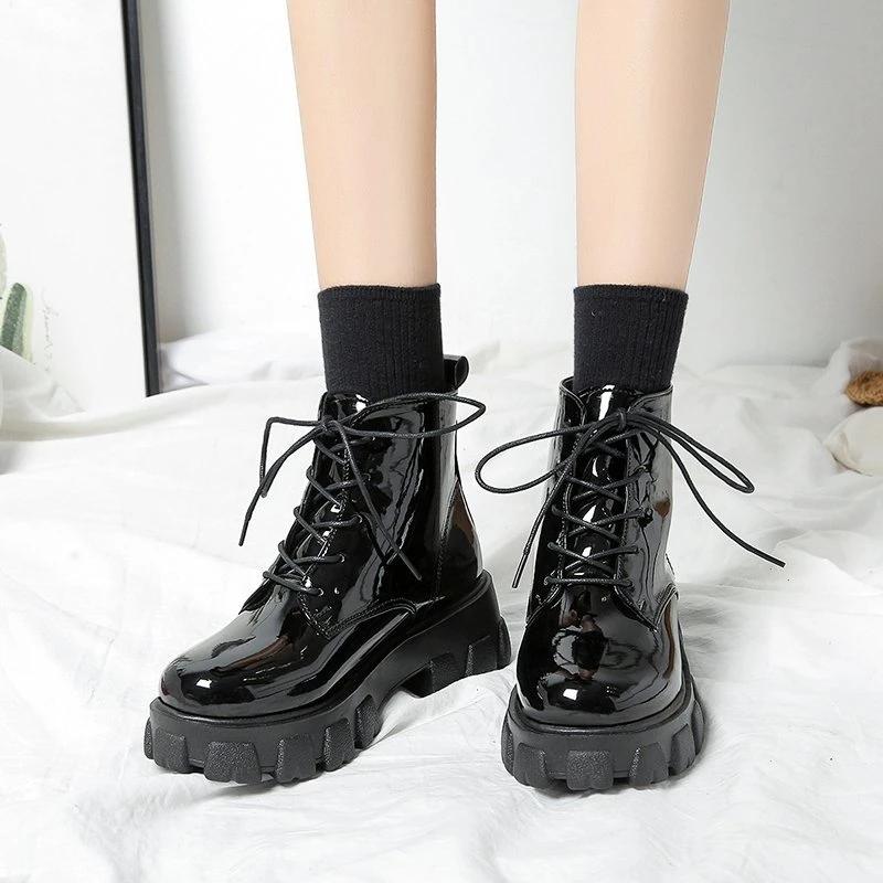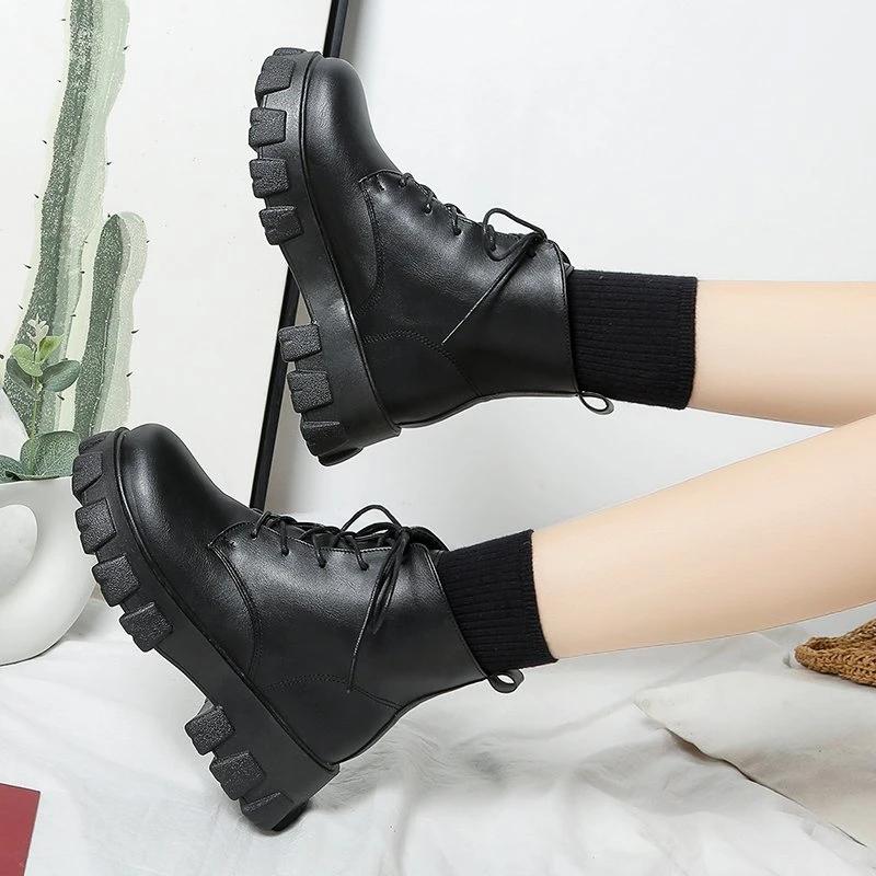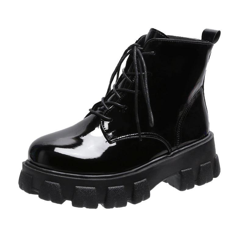Модные женские ботильоны осень-зима на платформе с круглым носком, женские панк-ботинки на толстой подошве на шнуровке, ботинки-комбаты, размер 35-42