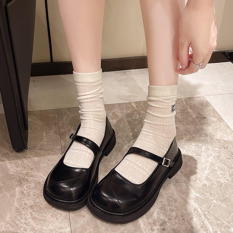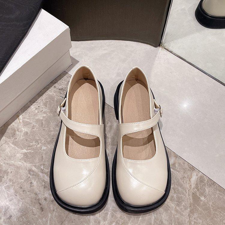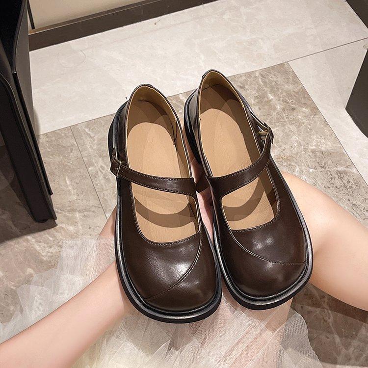 Fashion 2024 Japanese Style Vintage Buckle Mary Janes Shoes Women'S Shallow Mouth Casual Student Pu Leather Shoes Thick Bottom