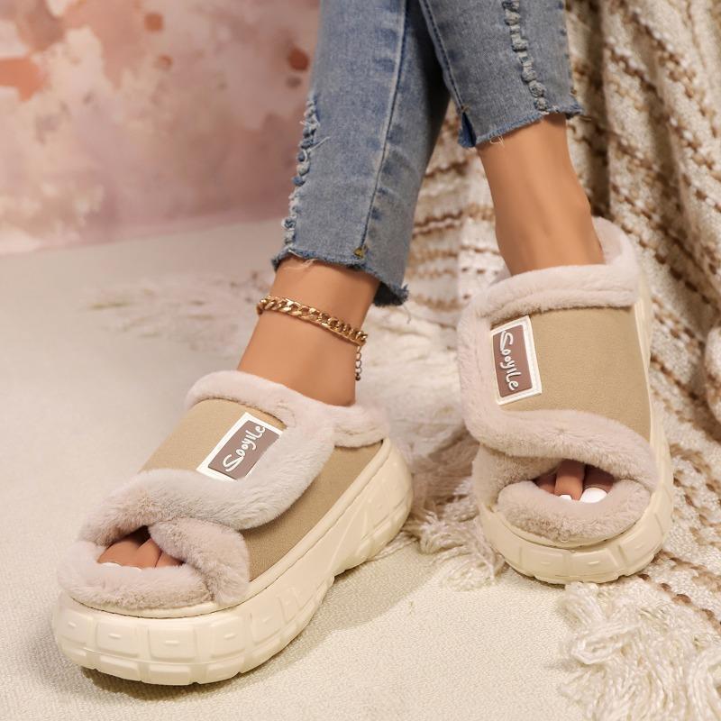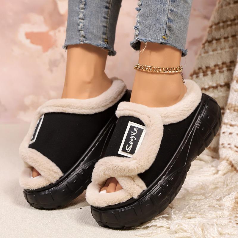 Мода 2024 года женские пушистые хлопковые тапочки Зимняя мода Новые домашние туфли на толстой подошве Легкие удобные тапочки на мягкой подошве