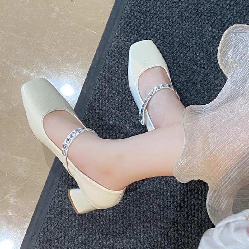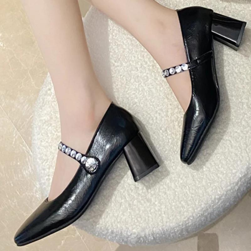 Модные туфли Мэри Джейн, женские туфли 2024 года, весна-осень-зима, толстые каблуки, высокие каблуки, квадратная головка, стиль феи, корейские универсальные туфли на плоской подошве