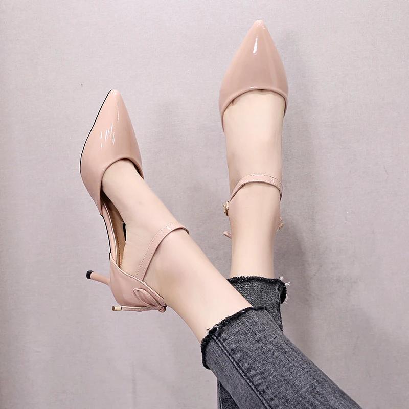 Мода 2024 Весна Новый Стиль Женская Обувь Острый Центр Пустая Туфля Бантик Корейская Версия Сексуальная Туфля Изящные Среднего Каблука Женские Сандалии