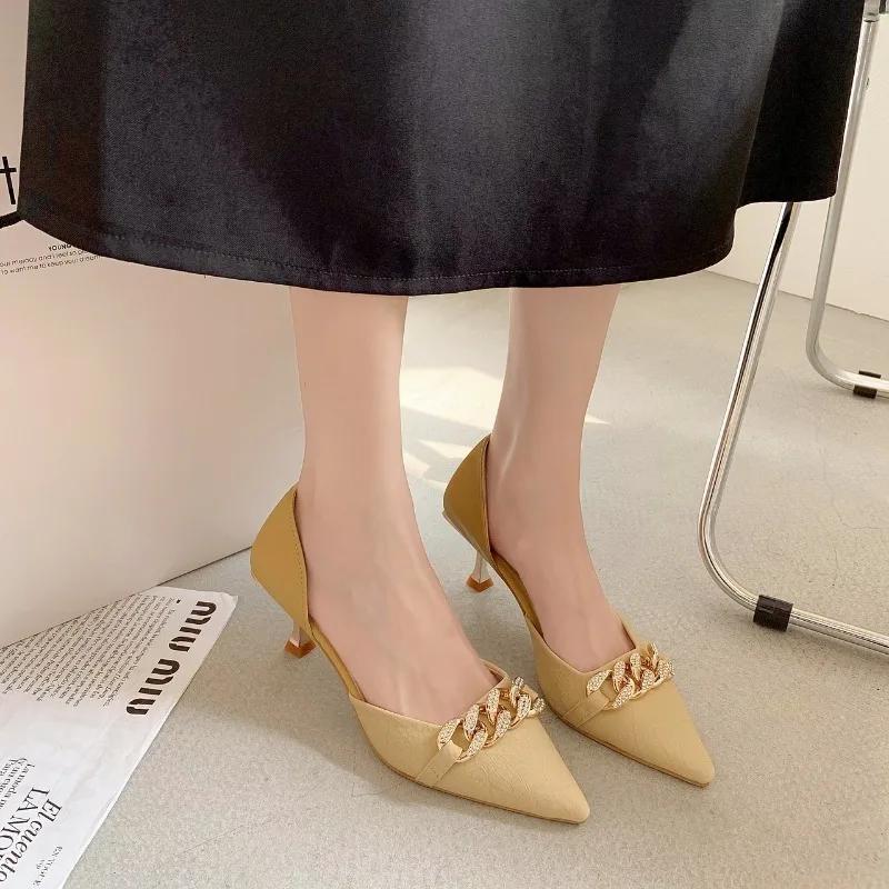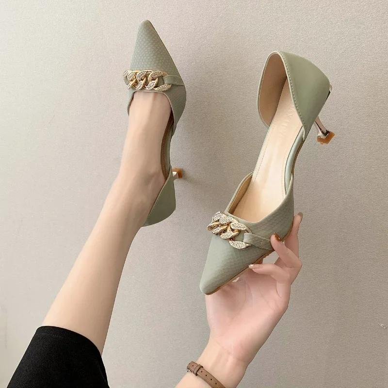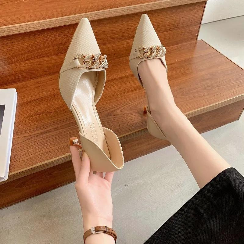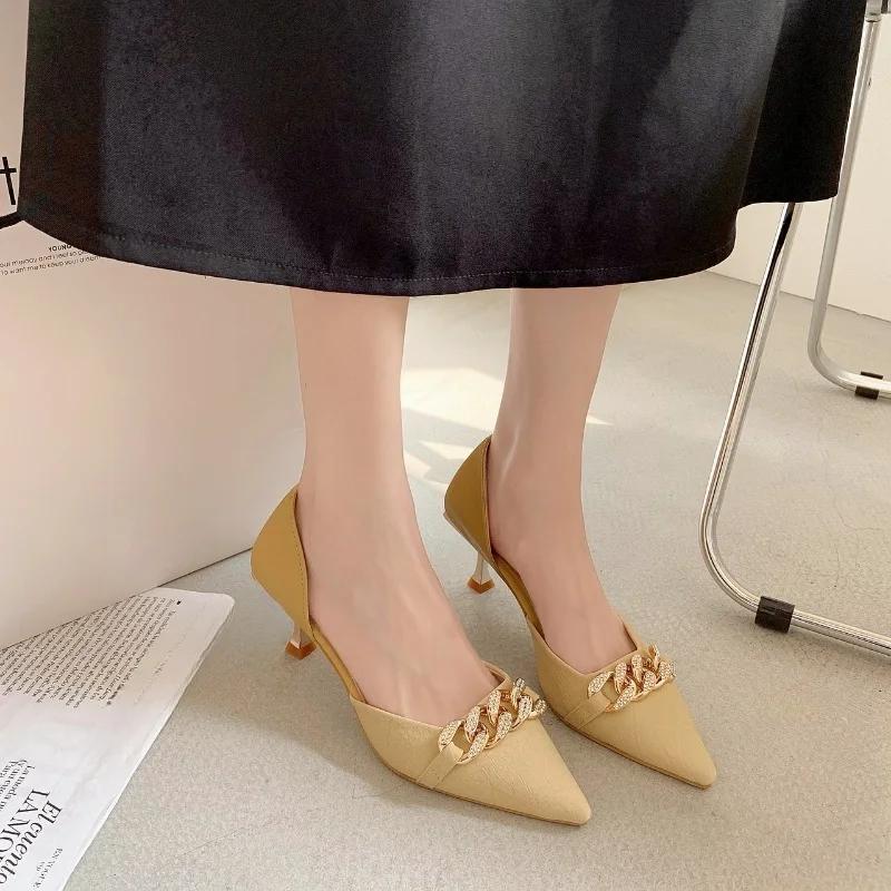 Мода Тонкие Каблуки Металлическая Отделка Заостренный Носок На Каблуке Высокая Женская Обувь Натуральная Кожа Повседневная Свадебная Обувь Невесты Туфли Стильные