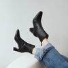 Модные зимние кожаные женские ботильоны на толстой подошве с острым носком на среднем каблуке, элегантная обувь 2025 года, модные туфли-лодочки в готическом стиле, челси, Botas De Mujer