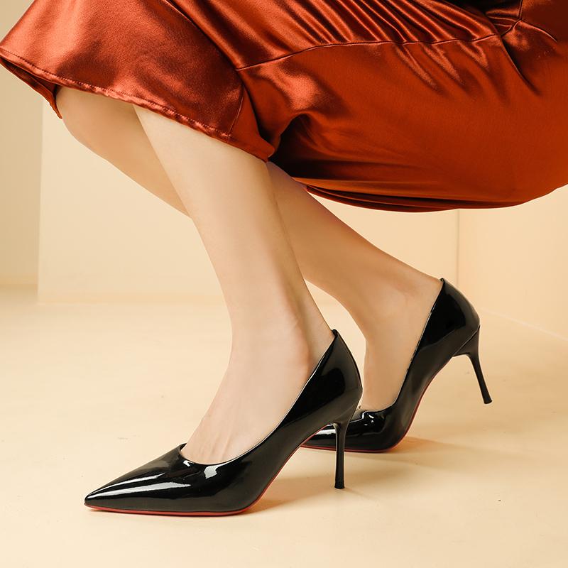 Мода 2024Женские офисные туфли-лодочки на шпильках Туфли на высоком каблуке Большой размер 42 Блестящие каблуки Лакированная кожа с острым носком Женская рабочая обувь 8 см НОВАЯ — купить товар онлайн с бесплатной доставкой по всему миру!