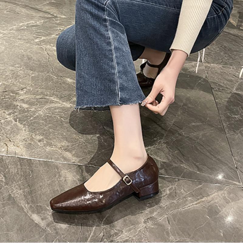 Модная женская обувь 2024 года, горячая распродажа, женские туфли Мэри Джейн на высоком каблуке с квадратным носком, повседневные туфли-лодочки, женские туфли с пряжкой и ремешком на квадратном каблуке