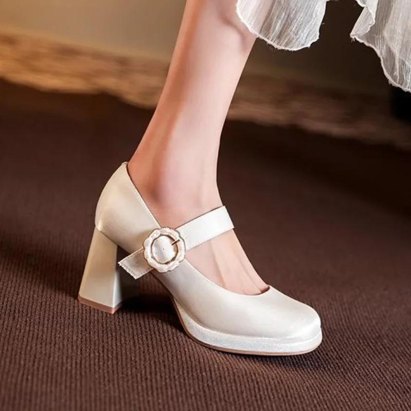 Мода 2024 Мода Туфли Мэри Джейн Женские Туфли на Высоком Каблуке Платья Однотонный Ремешок с Пряжкой Высокие Каблуки Zapatos De Mujer