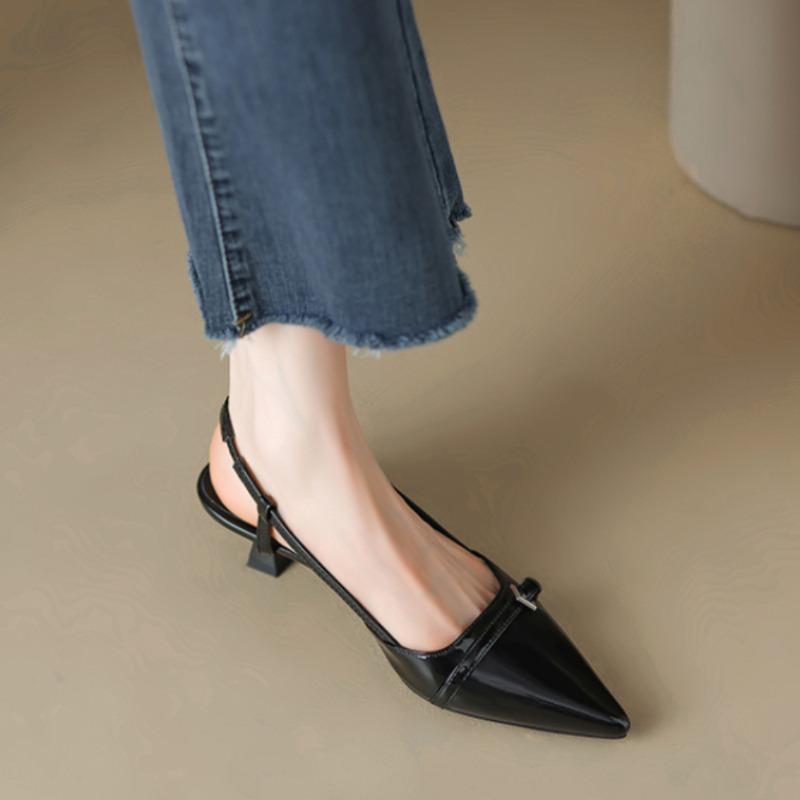 Мода 2024 года, остроносые сексуальные туфли на среднем каблуке, женские сандалии, дизайнерские летние туфли-лодочки с открытой пяткой, повседневные туфли, туфли-лодочки