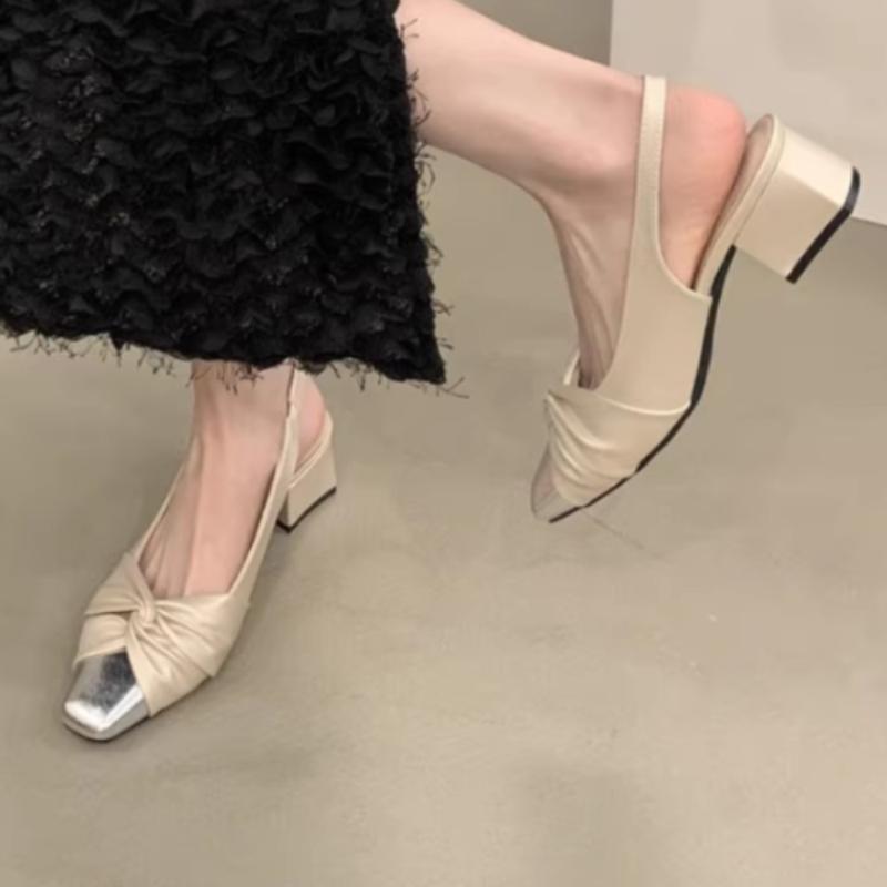 Модные сандалии на остром каблуке Женская обувь 2024 Женские Девушки Новые Эластичная лента Низкая мода Летний Комфорт Бежевые Открытые Высокие Сандалии