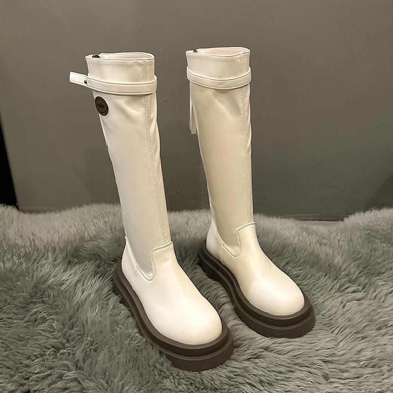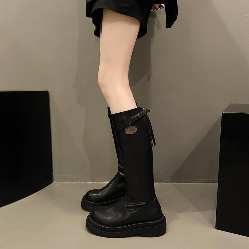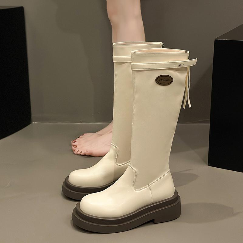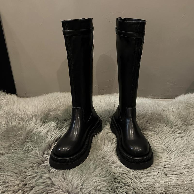 Модные новинки 2024 года, зимние женские сапоги длиной до колена, с застежкой-молнией сзади, на квадратном каблуке, с круглым носком, на платформе, для женщин Botines De Mujer