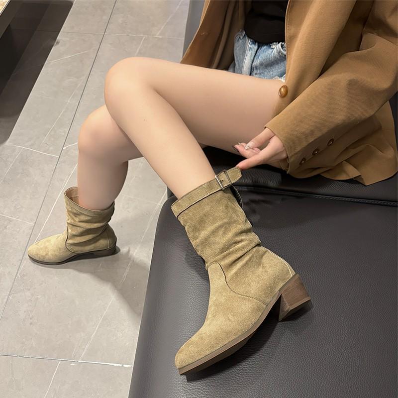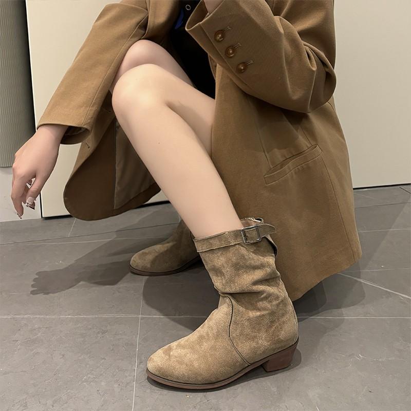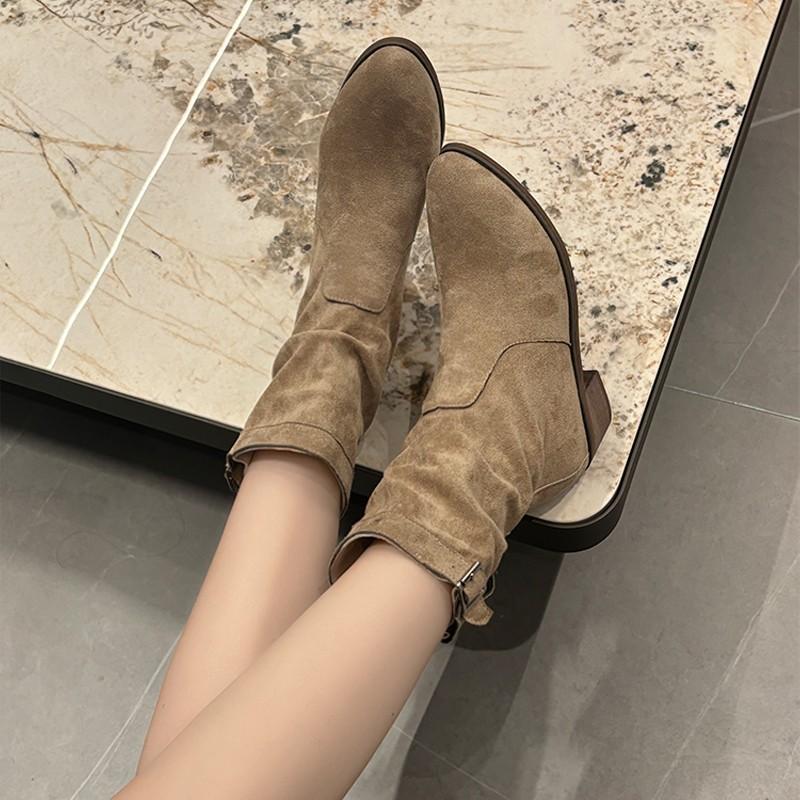 Модные новые стильные зимние классические ботинки для женщин из коровьей замши с острым носком на танкетке ботильоны простые удобные ковбойские сапоги женские