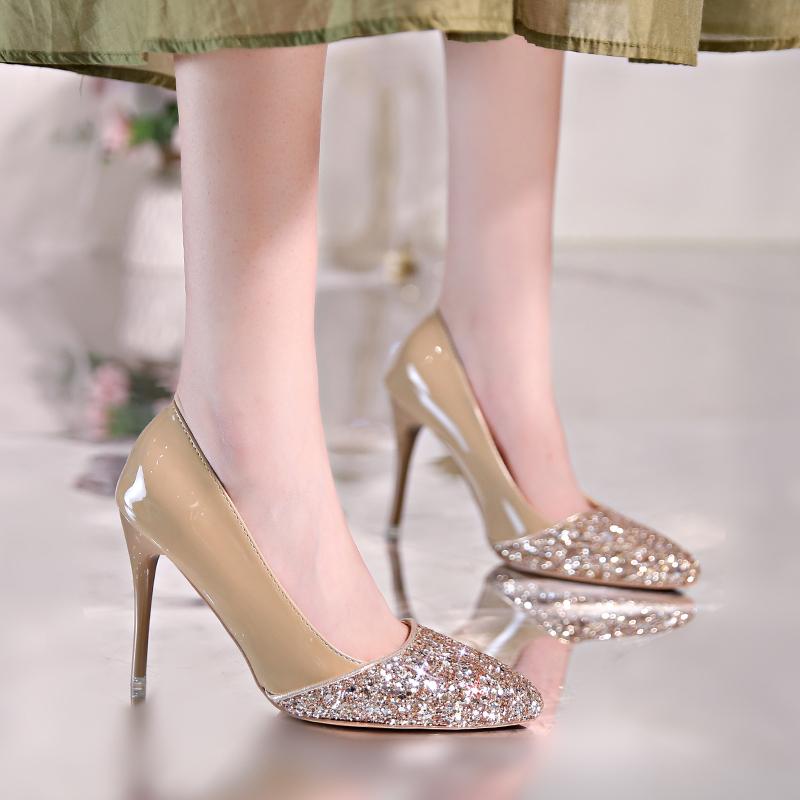 Мода 2024 года, новые осенние женские туфли, модные туфли-лодочки с острым носком и пайетками на шпильке из лакированной кожи, туфли на высоком каблуке для банкета и свадьбы — купить товар онлайн с бесплатной доставкой по всему миру!