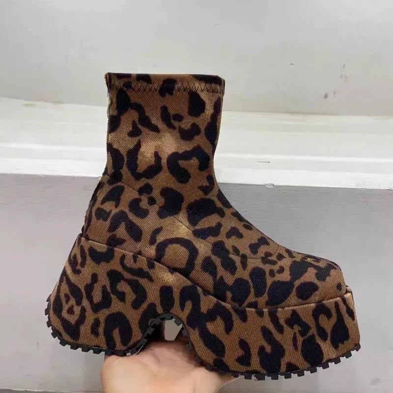 Модные туфли на толстой подошве для женщин 2024 года, уличная мода, женские ботинки с леопардовым принтом, модные и универсальные туфли для вечеринок в стиле панк