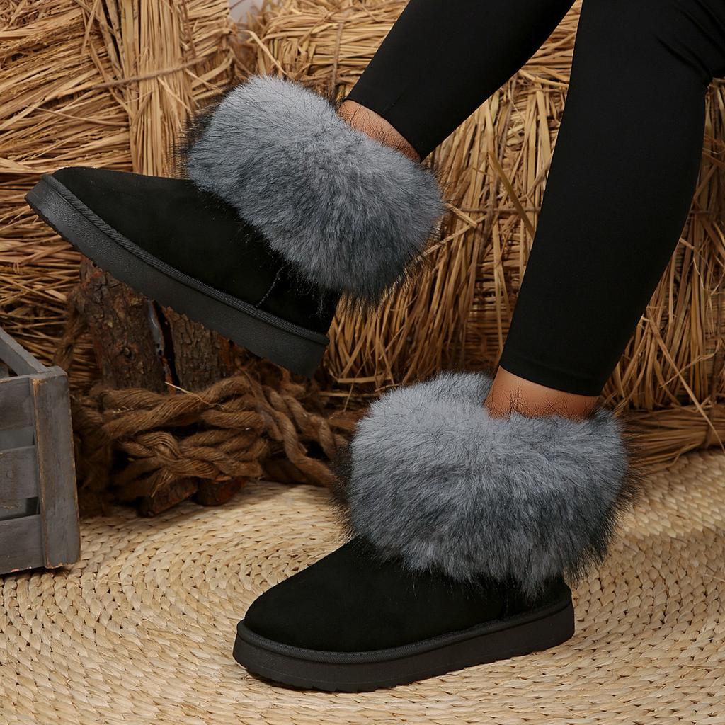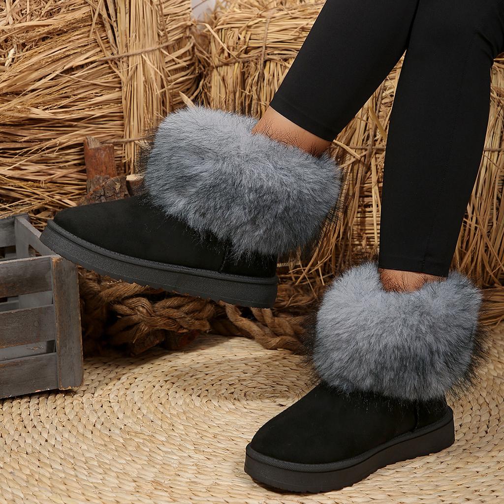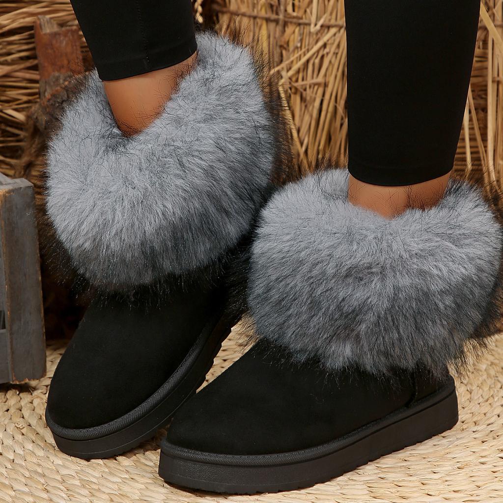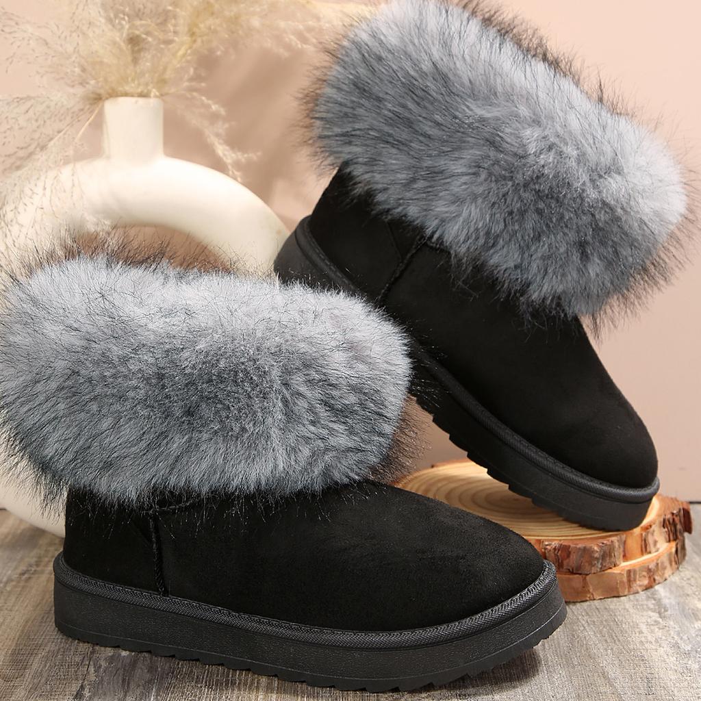 Модная женская обувь Furry 2024, женские ботинки в стиле ретро с круглым носком, зимние плюшевые теплые фиолетовые короткие ботинки, нескользящие женские зимние ботинки