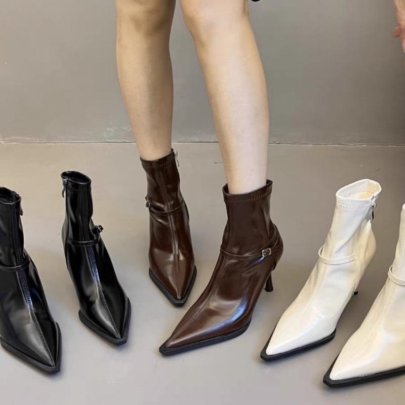 Мода 2024 года, новая весенне-осенняя мода, элегантные женские короткие сапоги с острым носком и тонким каблуком, размеры 35-39