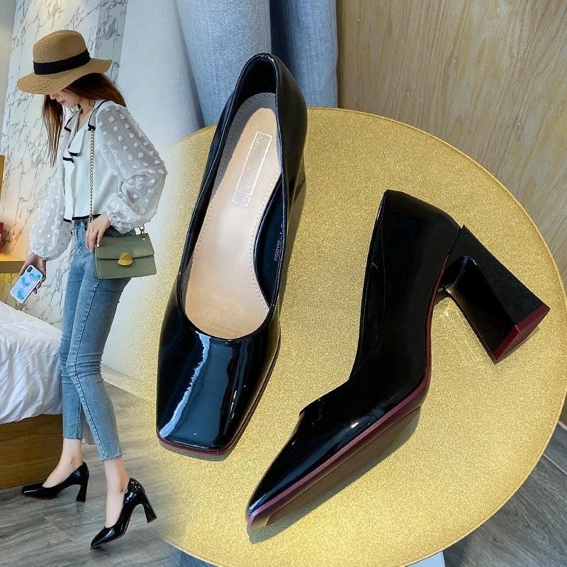 Модные повседневные и универсальные женские туфли с квадратным носком 2024 года, новые модные женские туфли-лодочки с неглубоким носком, элегантные и простые туфли на квадратном каблуке — купить товар онлайн с бесплатной доставкой по всему миру!