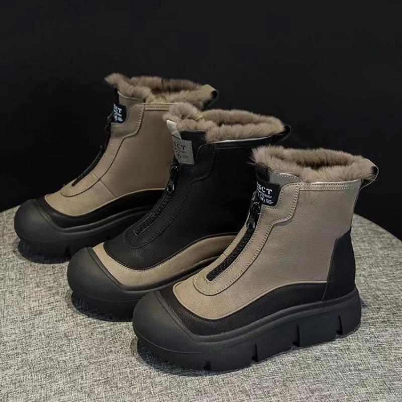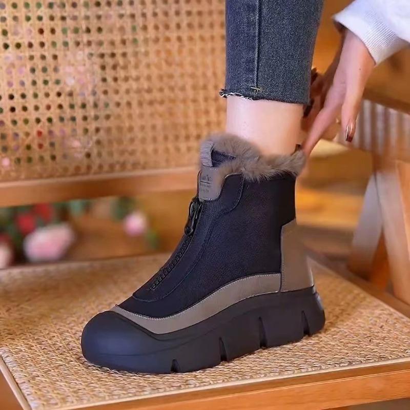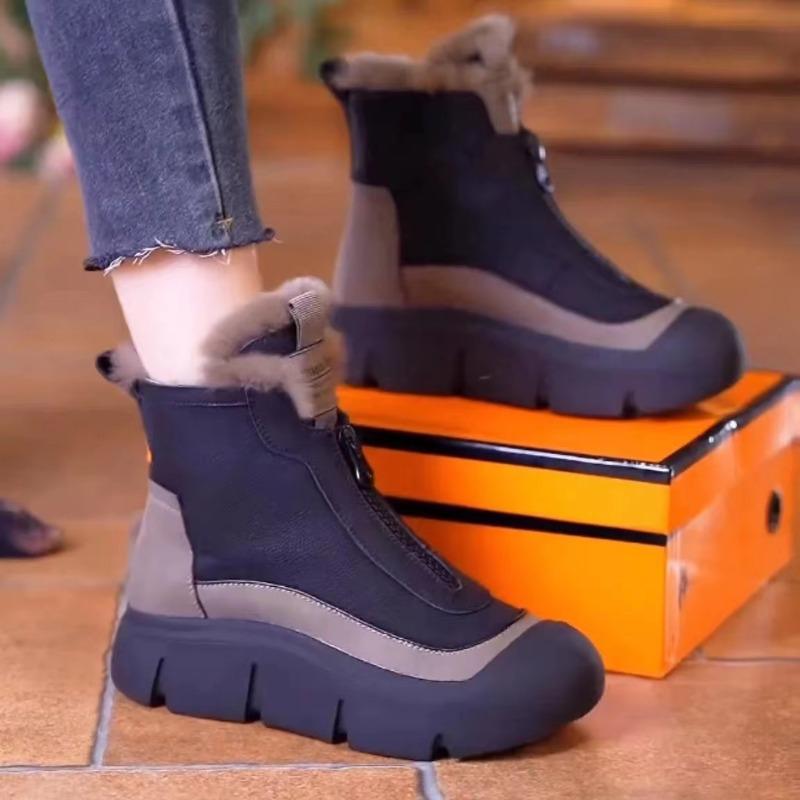 Модные зимние теплые плюшевые женские зимние ботинки с толстой подошвой и молнией спереди 2024 года, горячая распродажа, водонепроницаемые, однотонные, повседневные, удобные ботинки