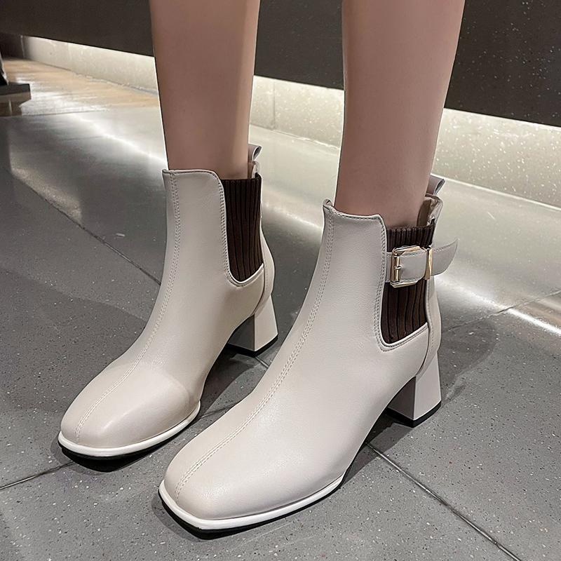 Модные однотонные ботинки осень-зима для женщин с квадратным каблуком 2024 года, высококачественные модные женские ботильоны с квадратной головкой для отдыха на открытом воздухе — купить товар онлайн с бесплатной доставкой по всему миру!