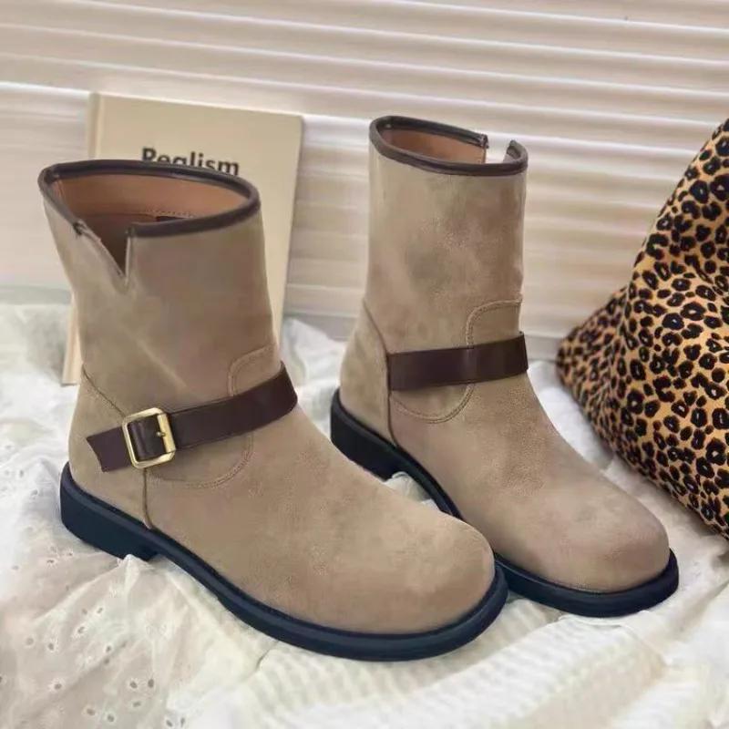 Модный дизайн с пряжкой Осенняя женская обувь 2024 Новые британские ретро замшевые женские ботинки Повседневные и универсальные модные короткие ботинки Большой размер 42