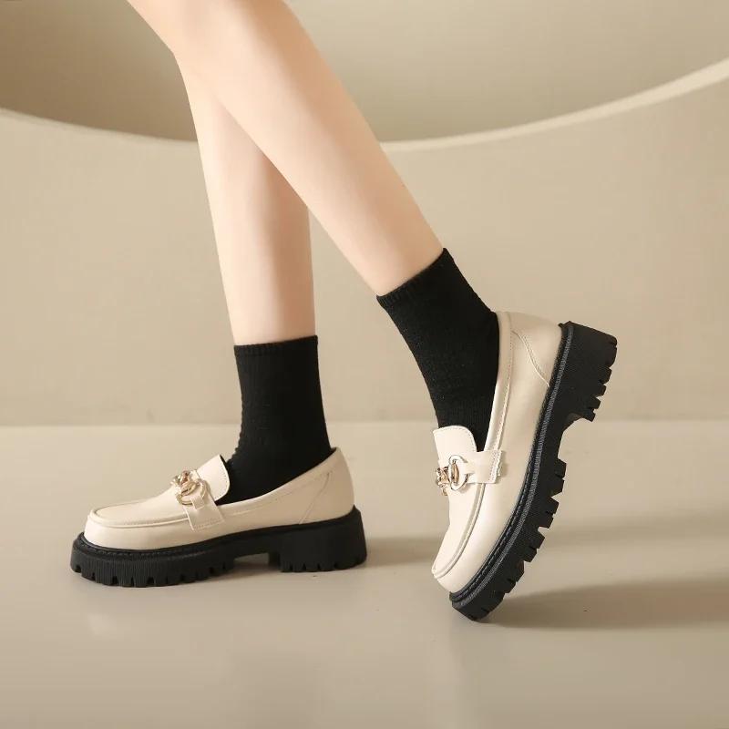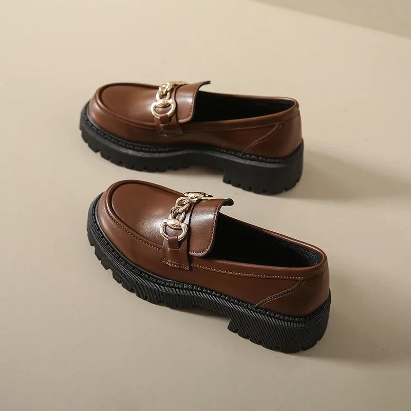 Мода 2024 Весна и осень новые модные удобные женские повседневные мокасины на среднем каблуке с круглым носком