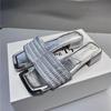 Модная женская обувь, летние стильные блестящие тапочки с оборками, квадратный носок, металлический обтянутый открытый носок, босоножки на блочном каблуке для женщин