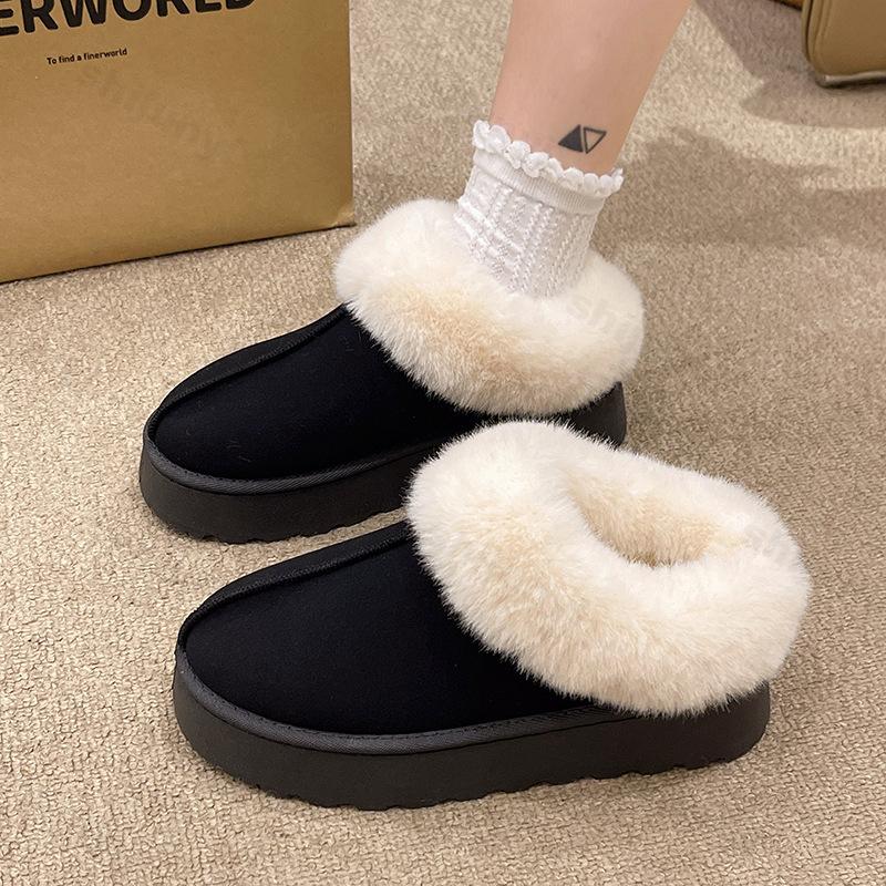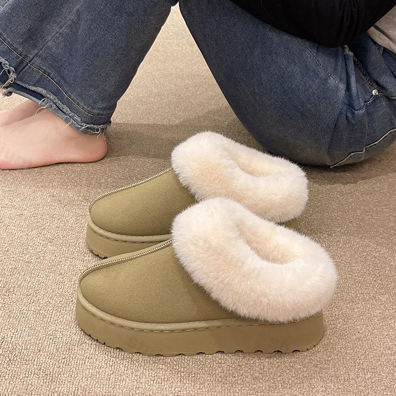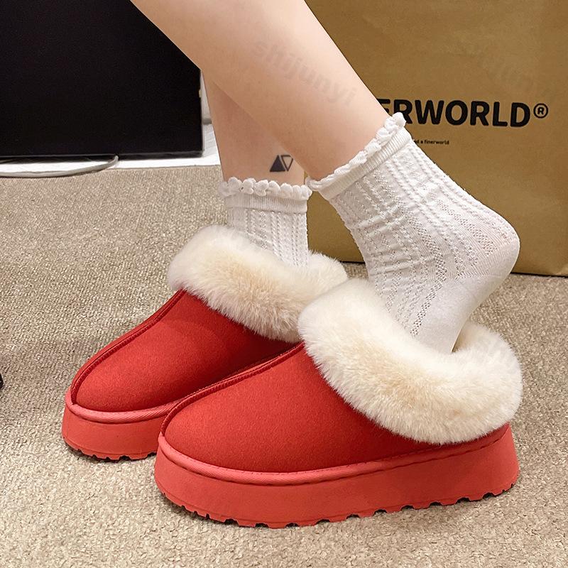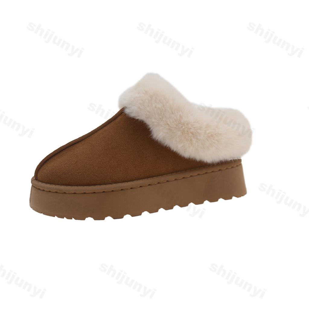 Мода 2024 Новые Зимние Сапоги Зимние Женские Тапочки Уличная Обувь Теплые Плюшевые Хлопковые Ботинки Ретро Коричневые Женские Зимние Сапоги Платформа Мюли