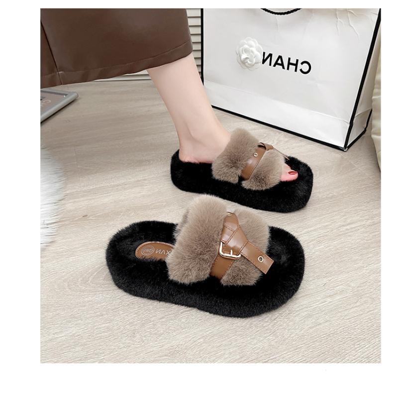 Модные зимние женские тапочки с пряжкой, однотонные, теплые, из короткого плюша, новинка 2024 года, горячая распродажа, модные нескользящие уличные женские туфли с пряжкой