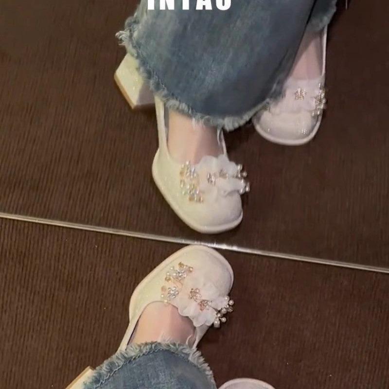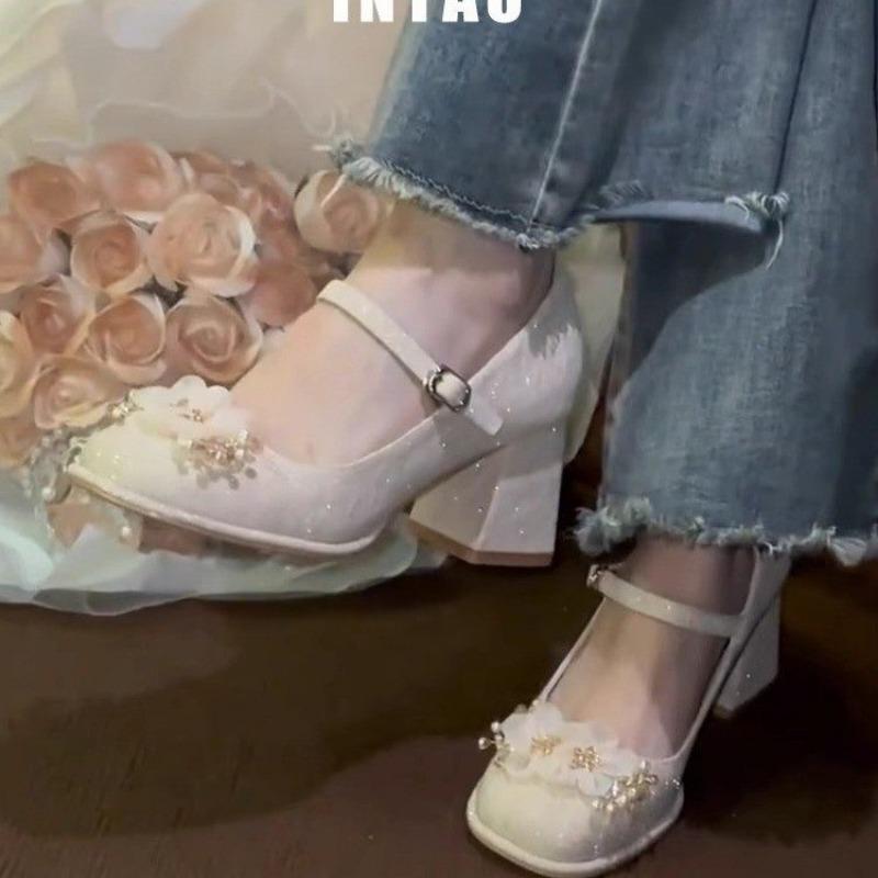 Мода 2024 года, новые свадебные туфли на высоком каблуке для женщин, весна-осень, шелковая вода, бриллианты, цветочная линия, модные женские туфли со стразами