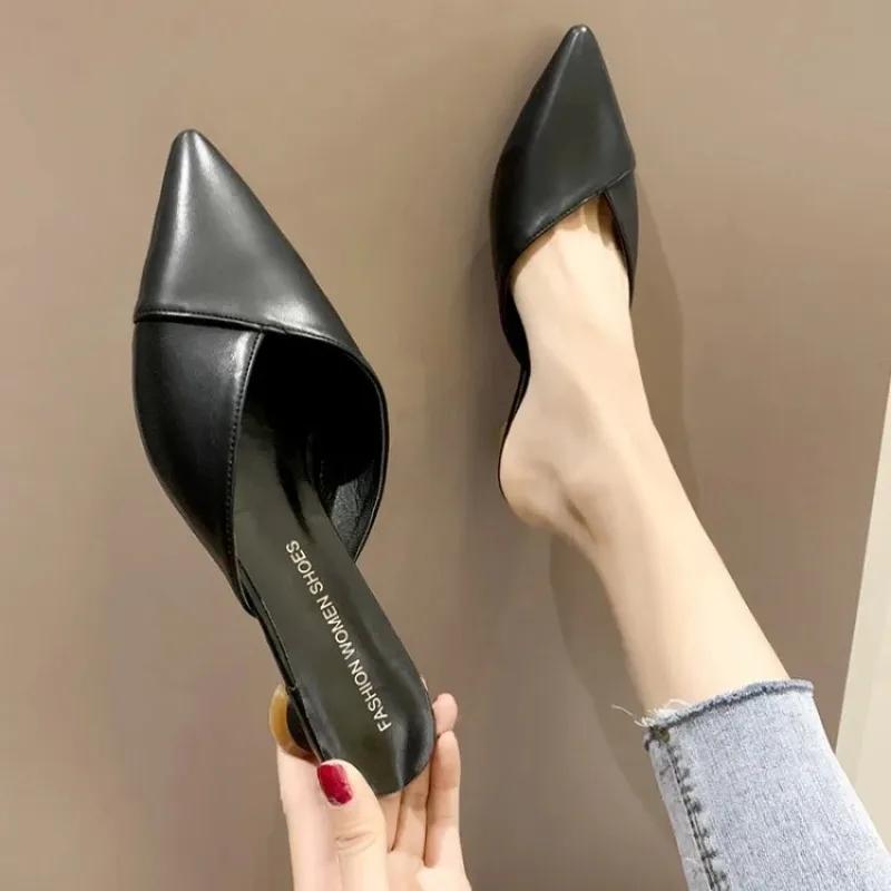 Модные женские элегантные мюли, женские повседневные тапочки 2024 года, женские туфли на низком каблуке, модные женские туфли с острым носком, женская обувь ярких цветов
