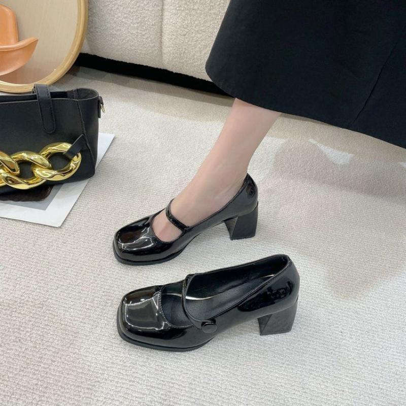 Модная вечерняя обувь на высоком каблуке черного цвета для женщин 2024 Женская летняя обувь Квадратный японский стиль Лолита Туфли-лодочки на каблуке Готический повседневный