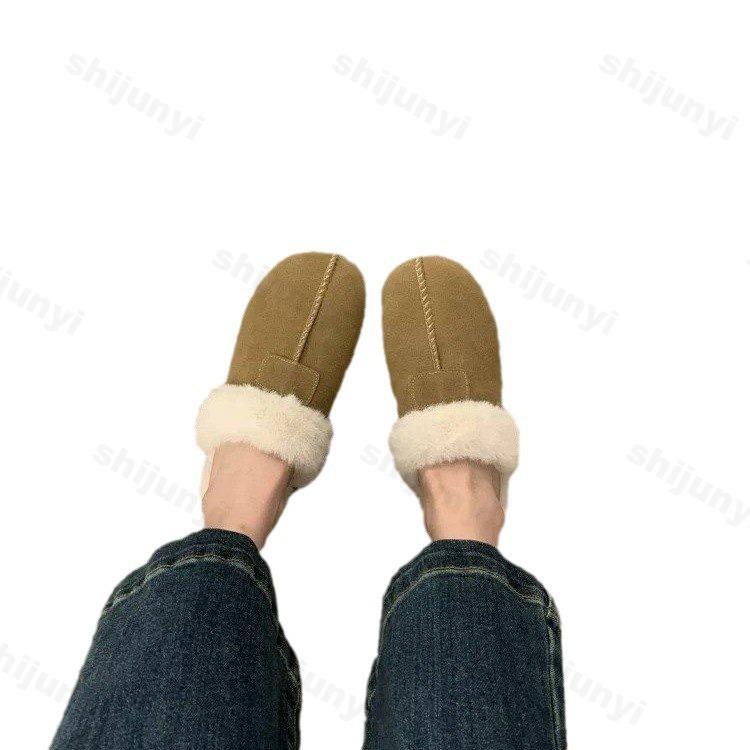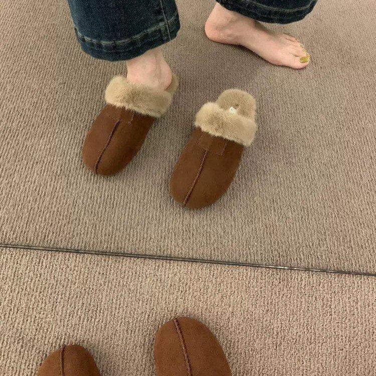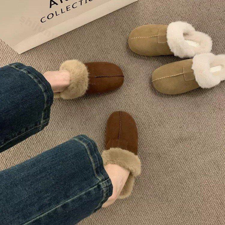 Мода 2024 года, новые тапочки из искусственной замши и искусственного меха, женские домашние теплые нескользящие шлепанцы, женские повседневные тапочки на плоской подошве, плюшевые тапочки, женская хлопковая обувь