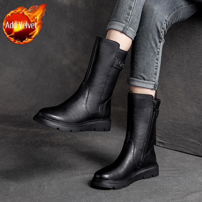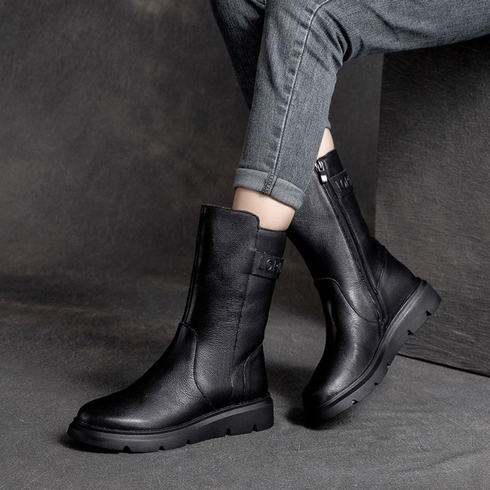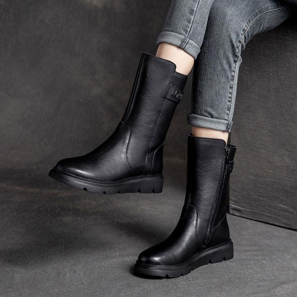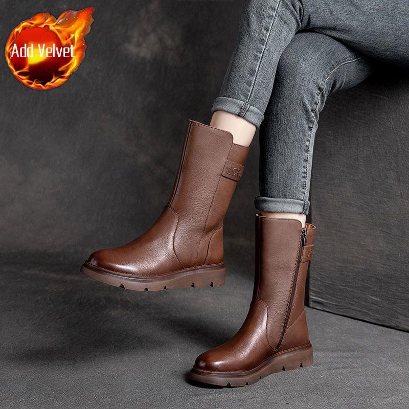 Модные полусапоги для женщин в байкерском стиле на плоской подошве, коричневые, с круглым носком, элегантные, с низким каблуком, туфли до середины голени, женские, по акции, новые, рок-шикарные, популярные